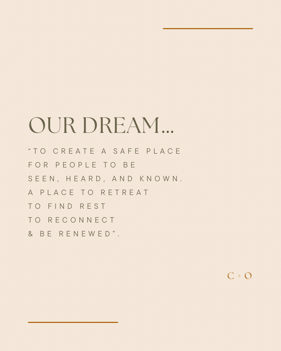We are so glad that you are here! As friends and therapists, we have come together in a shared dream. We have both desired to create a space where people can truly rest, reconnect with who they are, and be renewed in order to live in their purpose.